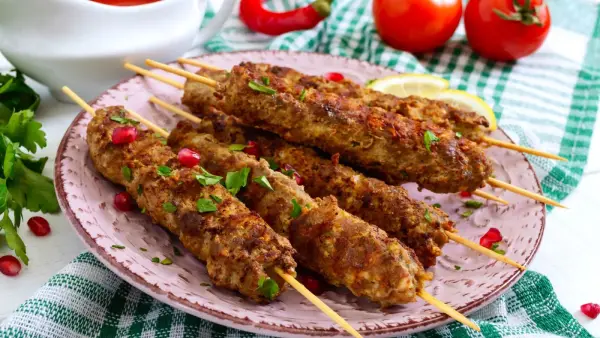 Skewered pieces of juicy and succulent Minced chicken blended with spicy, fiery, And hot dry indian spices.